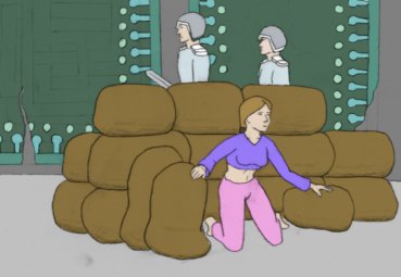 | Guard1: | We'd better find those intruders or captain will have our balls on a plate!! |